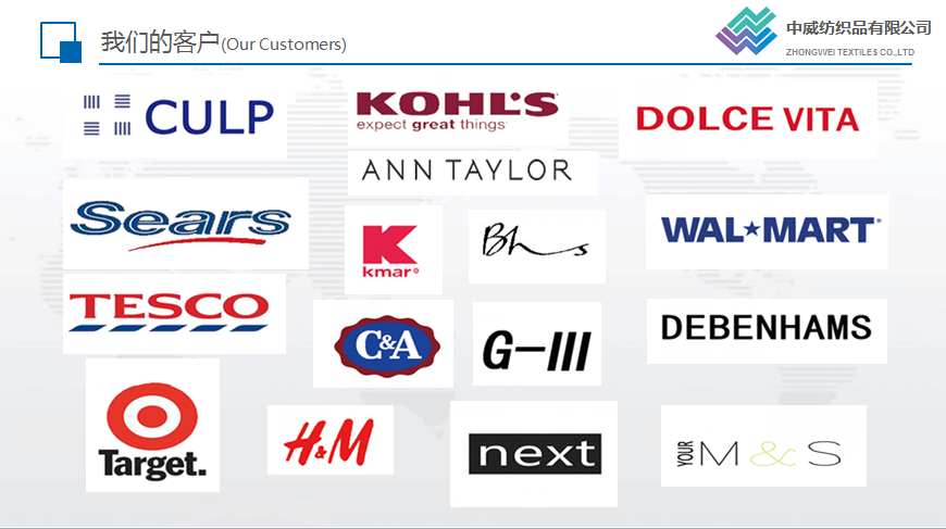 中威紡織主要經營麂皮類家紡及各類服裝面里料,并可根據客戶要求研發、生產及深加工各類面料。公司產品遠銷美國、墨西哥、南美、歐洲等世界各地。公司自成立以來,憑著優良的品質、合理的價格以及完善的服務,贏得了國內外客戶的信賴。目前公司已與世界眾多大品牌建立了良好的業務往來。